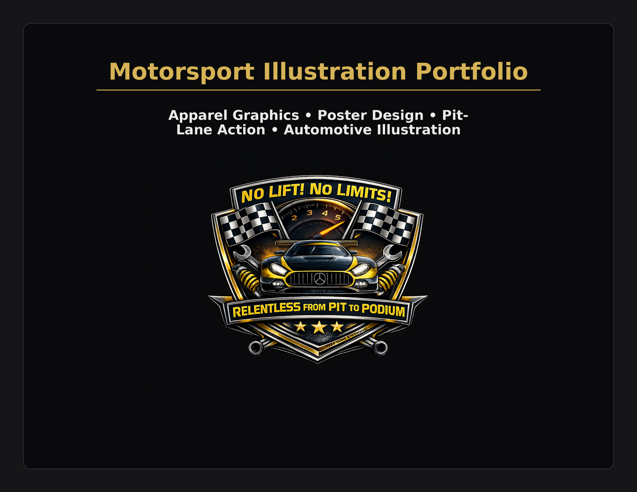 Premium motorsport visuals for apparel, commemorative prints, promotional pieces, sponsor presentation, and race-team branding — designed to capture speed, identity, and race-day energy with a high-impact collector feel.